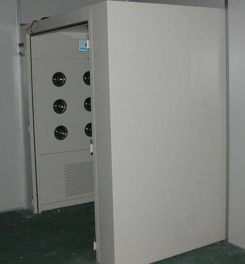 貨淋室通過高效風(fēng)機(jī)作用送風(fēng),經(jīng)高效過濾器過濾后吹出高速潔凈氣流,以22-30m/s超強(qiáng)風(fēng)速,確保進(jìn)入潔凈區(qū)的人員及貨物達(dá)到徹底除塵的效果。采用全自動紅外線感應(yīng)控吹淋,雙門電子互鎖。